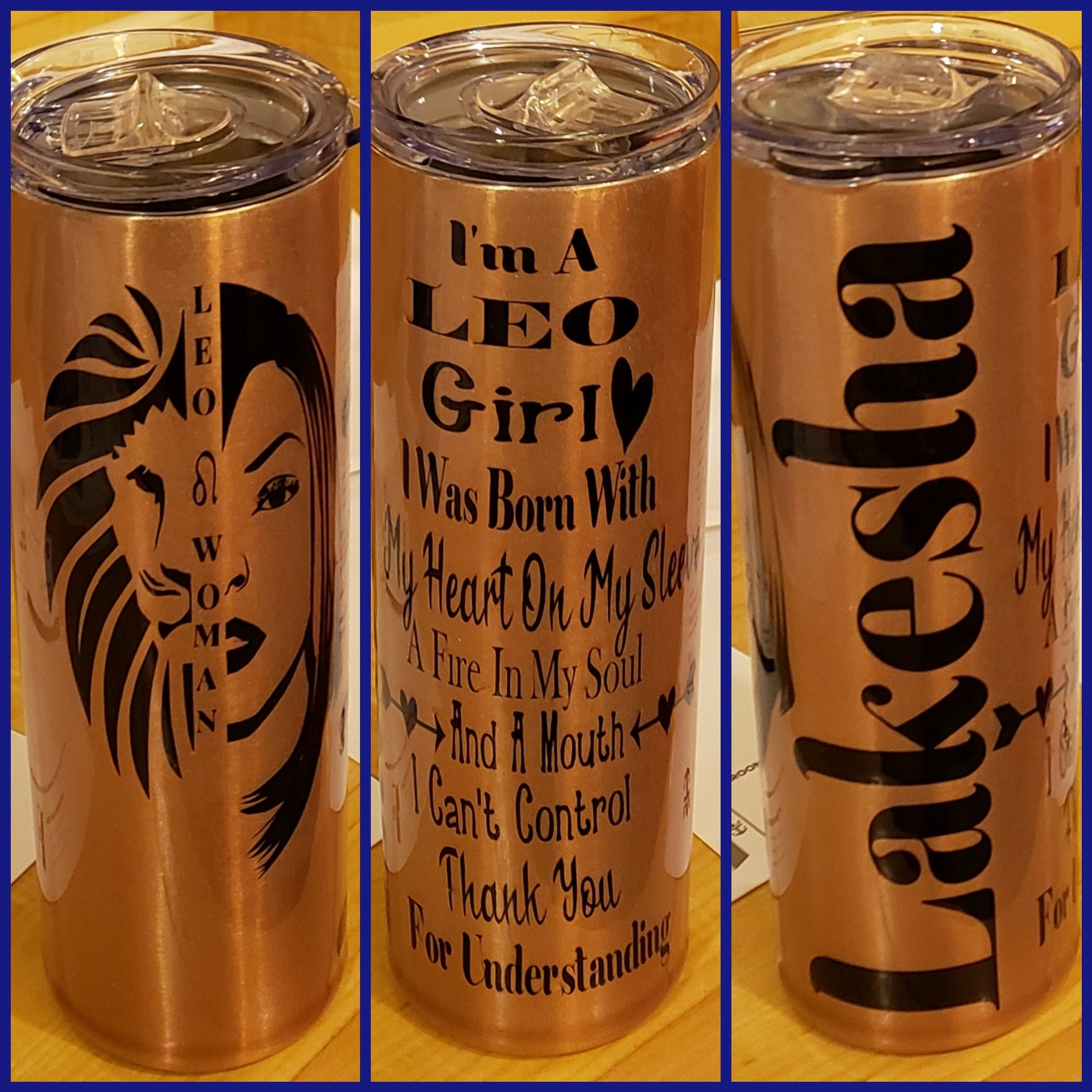 Show off your style with a fully customized 20oz skinny tumbler, created just for you. Every tumbler is handmade and completely unique — no two will ever be the same. Your drinkware becomes your statement piece.